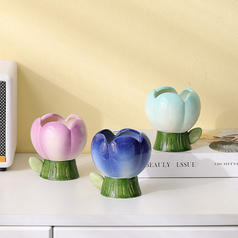 Barattolo di candela in ceramica a forma di fiore di giglio colorato profumato barattolo di candela di lusso per la decorazione domestica