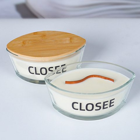 Vaso di candela di vetro dal Design moderno con coperchio in legno minimalista per la casa con un barattolo di candela profumato